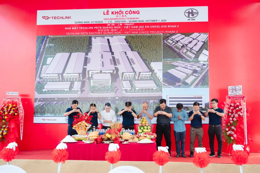 Không chỉ mở rộng năng lực sản xuất của Techlink Pets tại Việt Nam, dự án còn góp phần thúc đẩy phát triển kinh tế khu vực miền Trung, tạo công ăn việc làm và cơ hội hợp tác cho nhiều doanh nghiệp trong ngành xây dựng và công nghiệp phụ trợ.