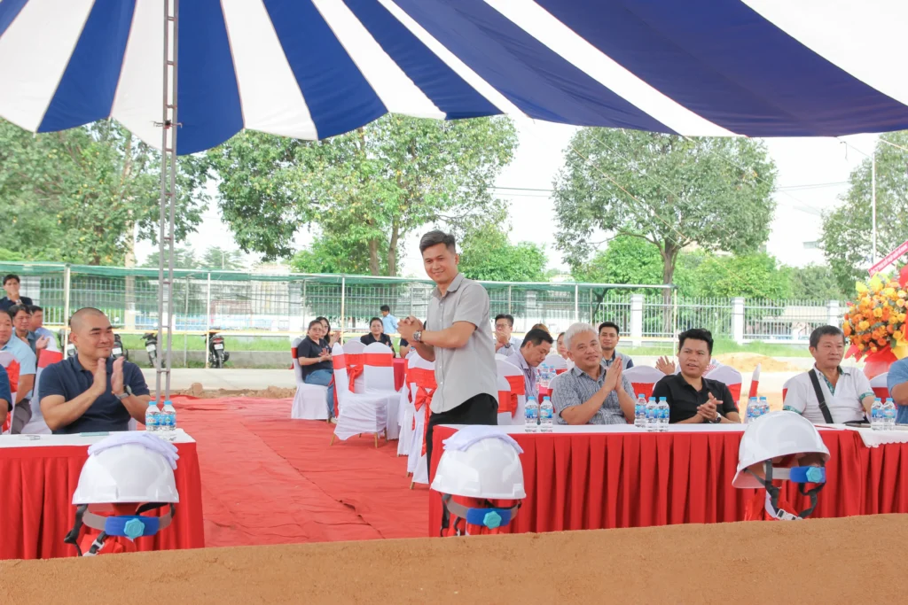 Buổi lễ diễn ra tại Lô B-2A1-CN, đường NE4, Khu công nghiệp Mỹ Phước 3, phường Chánh Phú Hòa, Thành phố Hồ Chí Minh, với sự hiện diện của đại diện Chủ đầu tư, Tổng thầu Hưng Phước Cons, cùng các đối tác và khách mời quan trọng.