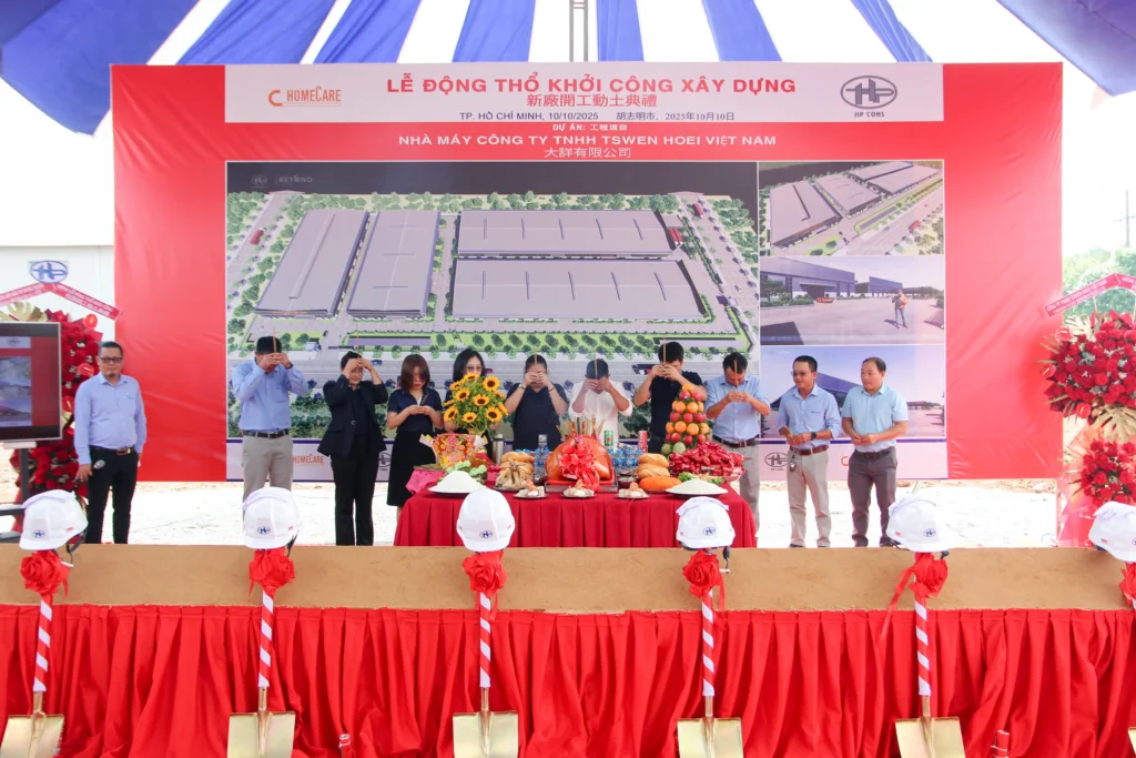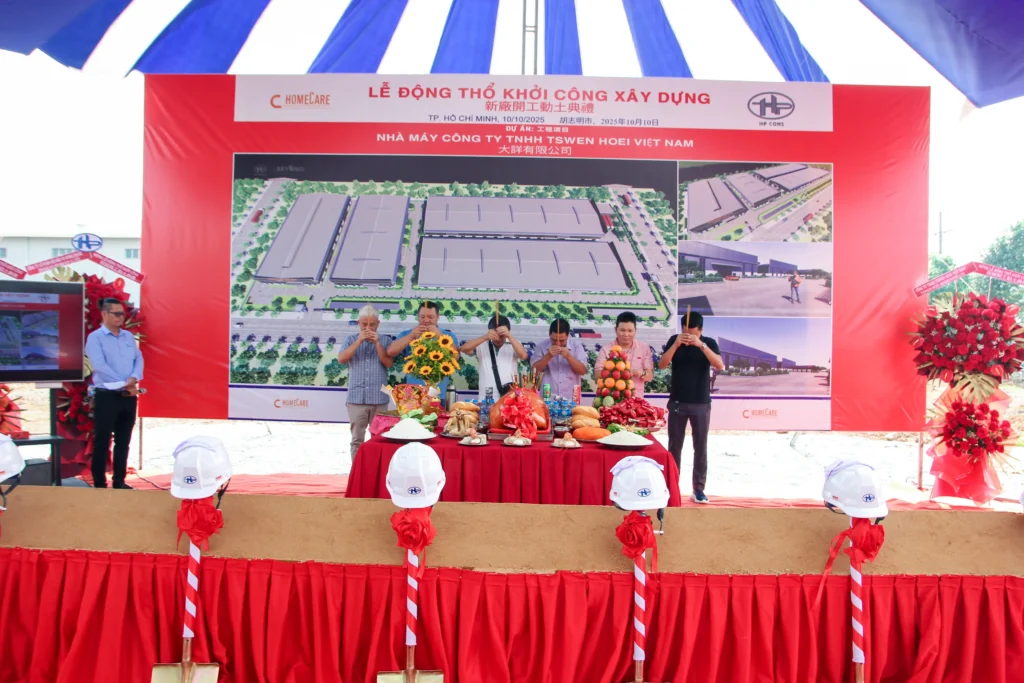 Buổi lễ khởi công diễn ra trong không khí trang trọng và phấn khởi, mở đầu cho một giai đoạn phát triển mới giữa Hưng Phước Cons và TSWEN HOEI Việt Nam.