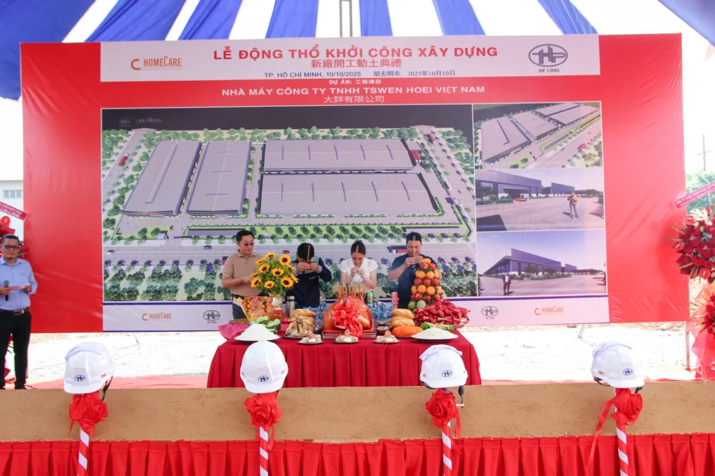 🔹 Ngày 18/10/2025, Công ty Cổ phần Xây dựng Công nghiệp Hưng Phước đã long trọng tổ chức Lễ động thổ khởi công dự án Nhà xưởng cho thuê – Công ty TNHH TSWEN HOEI Việt Nam (Giai đoạn 2).